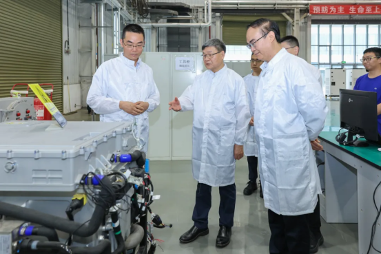 在调研过程中,罗乾宜对氢能车辆、氢燃料电池系统等主要产品进行了全面细致的考察,听取了东方氢能生产经营、技术创新、产业布局等方面的汇报,对东方氢能生产经营情况、全产业链的技术布局成果、科技创新等方面取得的成绩给予充分肯定。